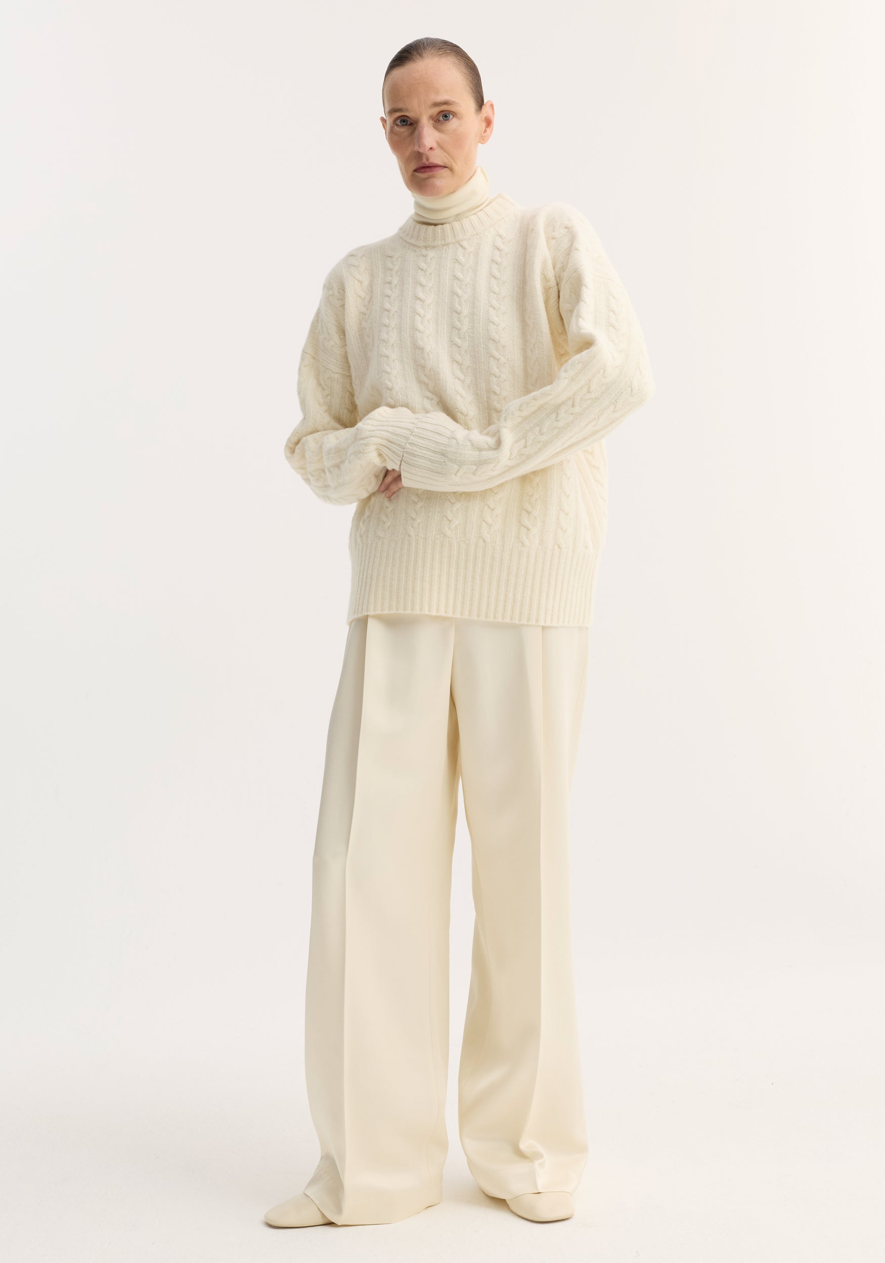 relaxed drawstring satin trousers | cream