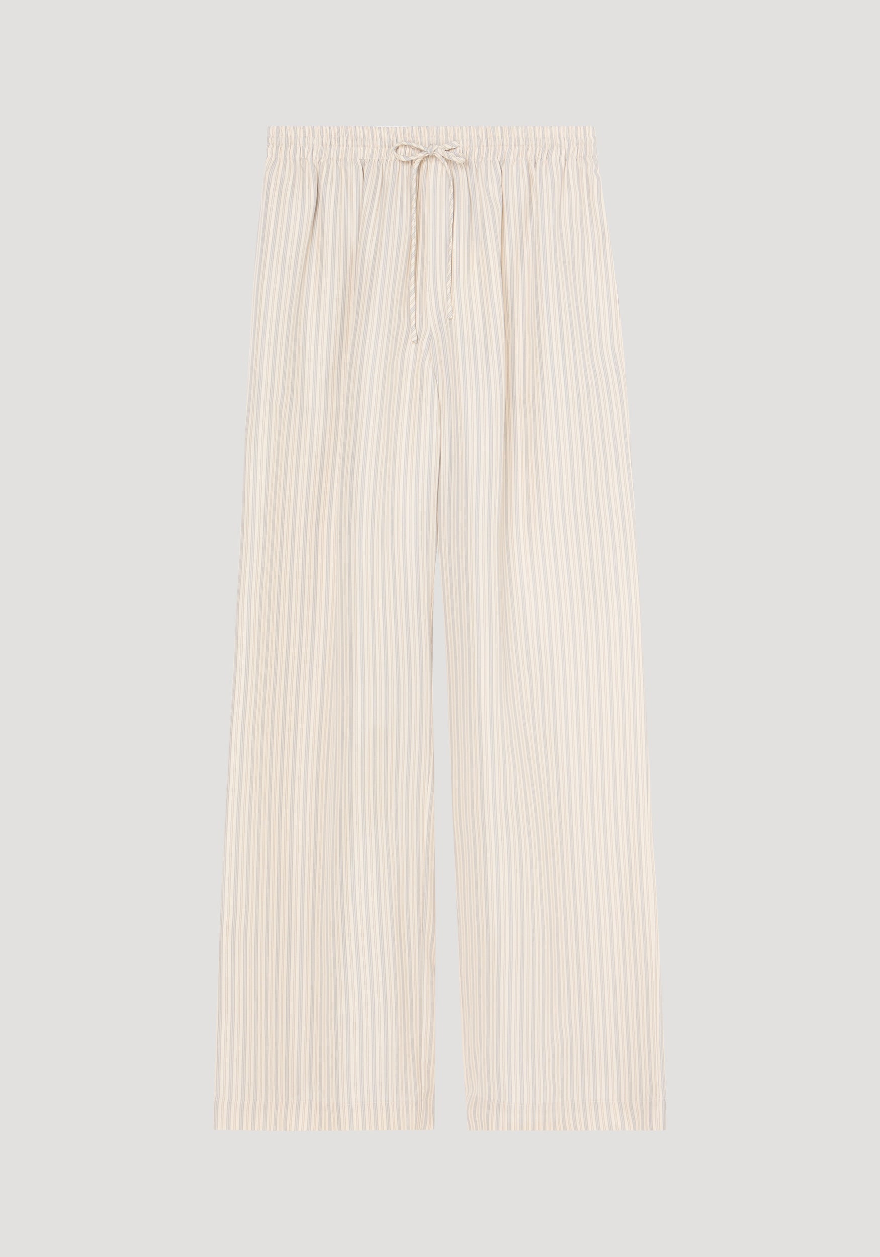 Our staple wide leg trousers with an elastic waistband and drawstring, made in our signature pure silk quality with a twill structure. Now introduced in a timeless elongating stripe print, a classic for every wardrobe.