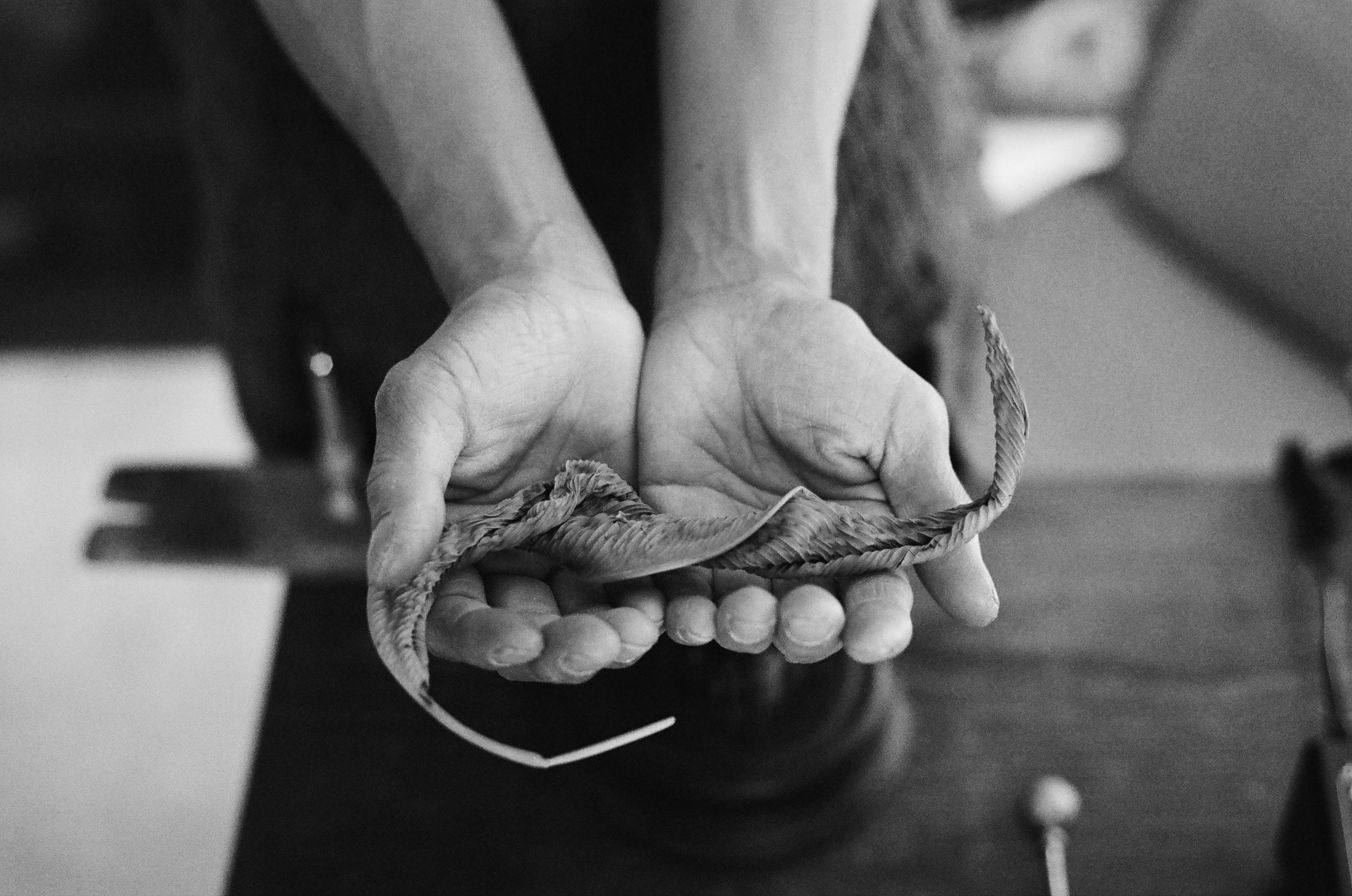 “Every day I take a walk, I get inspiration from nature, from the grass, flowers, and trees that look different throughout the seasons. When I’m not in a hurry I go hike in the mountains or go to the sea to search for materials and inspiration. I love to collect small natural things from my walks like leaves and shells.”