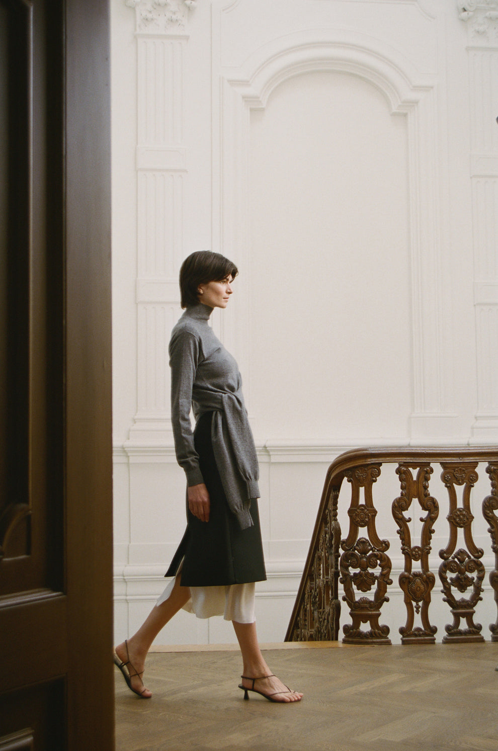 For Pre-Spring 2025, our Amsterdam atelier relocated to ‘Huis de Vicq,’ a double-width palace built along the canals in the second half of the 17th century. This change of dwelling was the biggest influence on the entire collection, a moment to cherish and honor our surroundings. Passing through the building, we encounter a clear history embedded in each space, constantly reminding us of the enduring value of beauty. From morning to evening, and from winter to spring, we witness the interplay of the external world within our walls. Stepping into the garden, this spontaneous beauty continues. We find ourselves in a period between new blooms, a reminder of the ongoing dialogue with nature and its importance.
