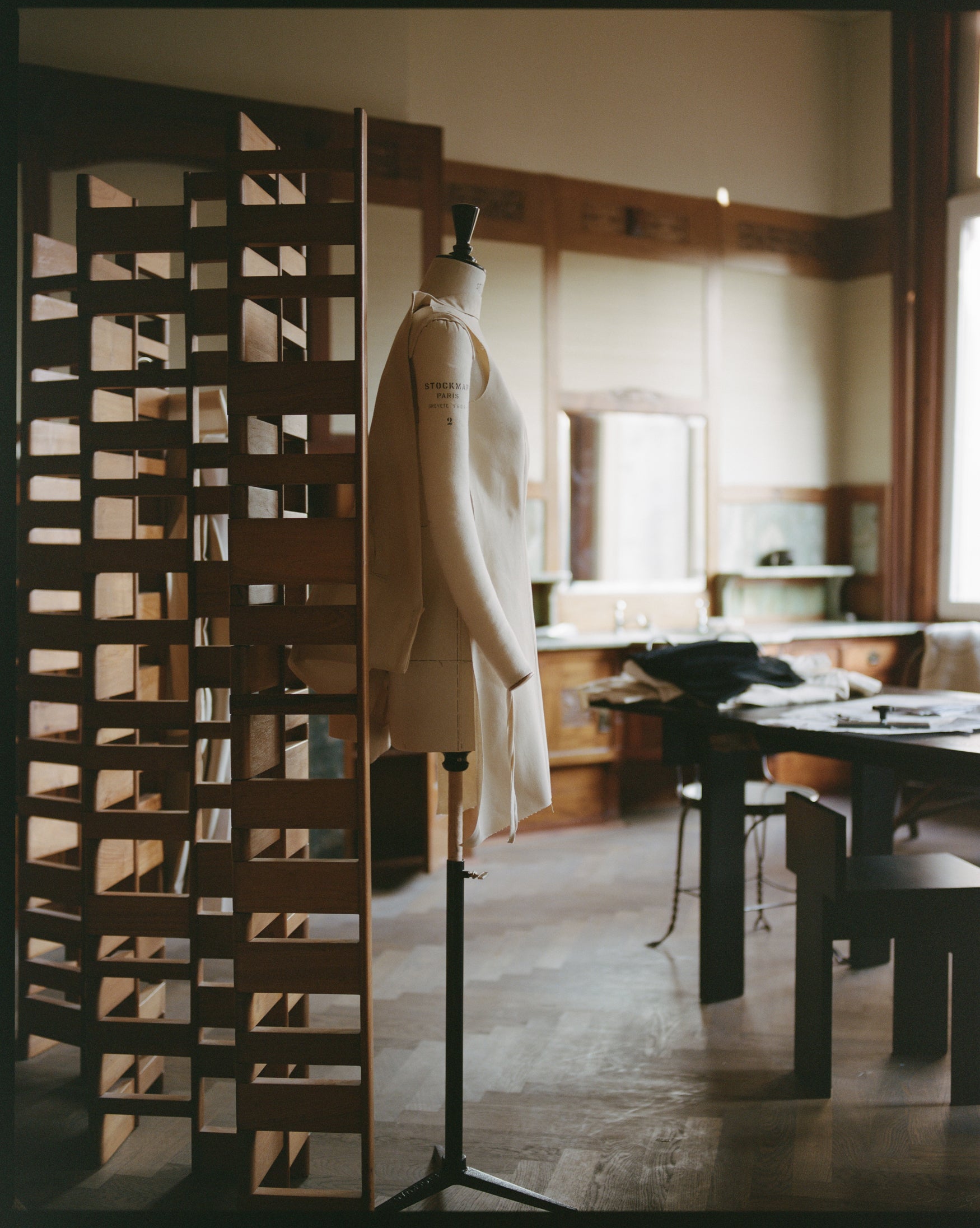 The building currently houses the Róhe in-house atelier, the heart of the design studio. Here, an international team works to perfect the construction and fit of the garments through research, mannequin draping, innovation, and in-house pattern making. The atelier contributes to the tradition of classic tailoring and at the same time experiments with these time-honored techniques.