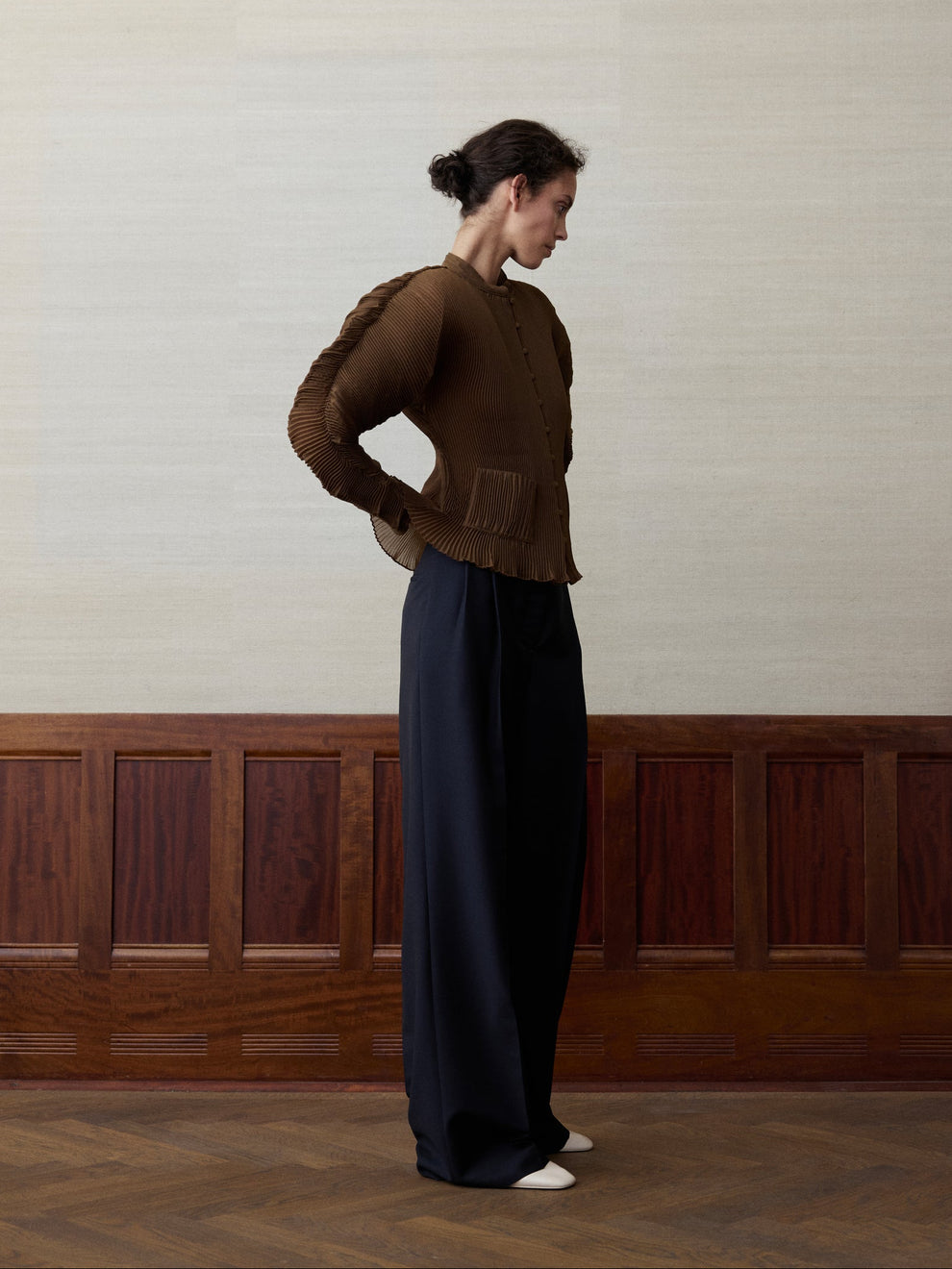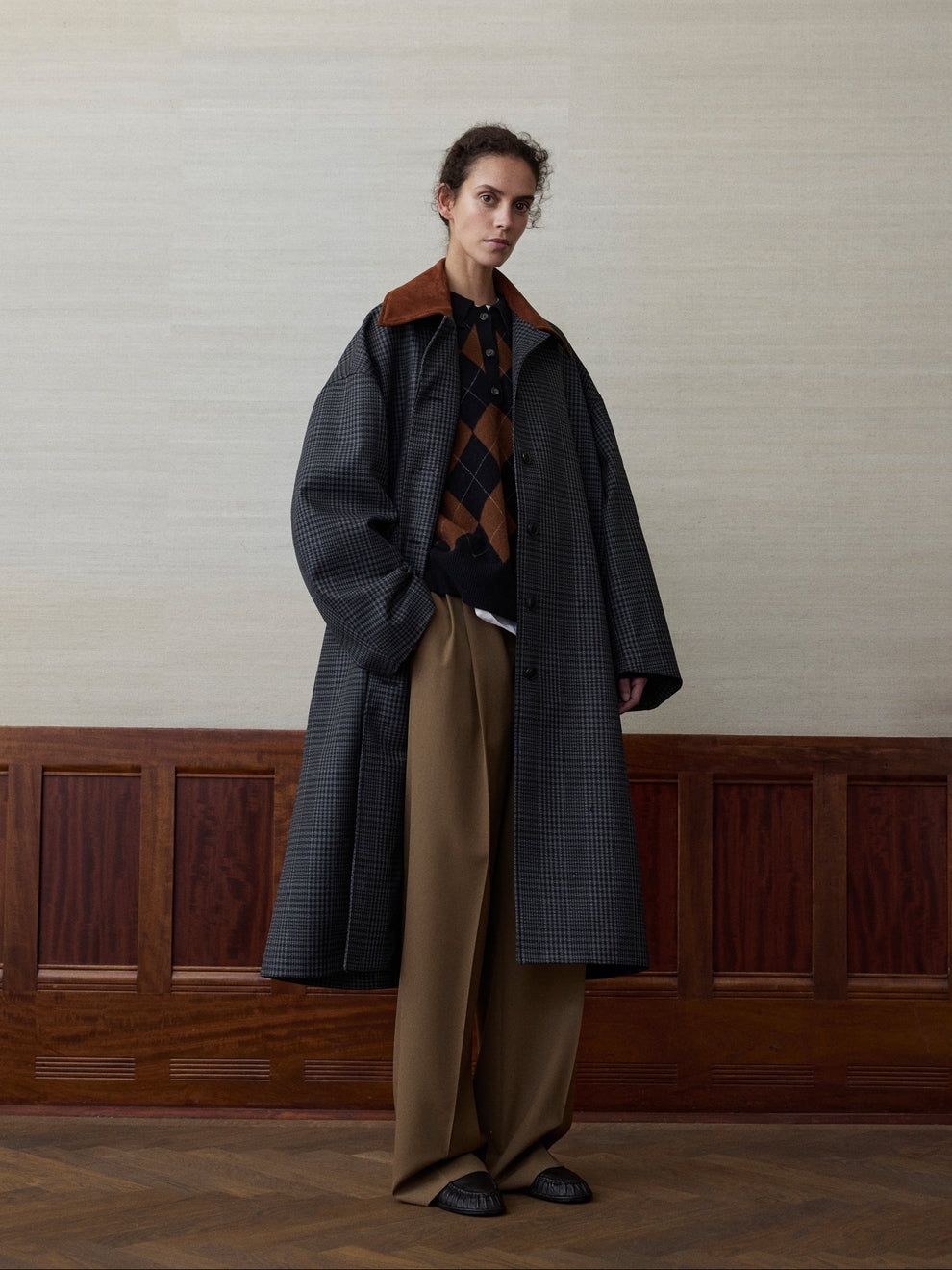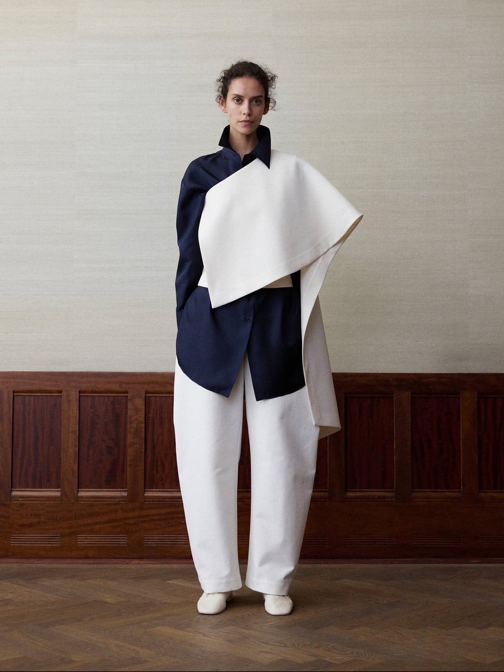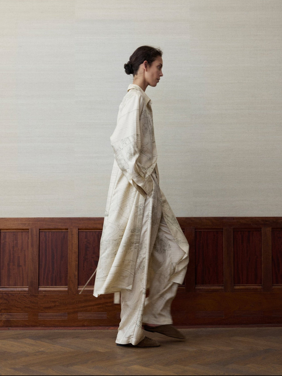 The new collection is a dialogue between past and present. Its inspiration began with an archival photograph of our home and muse, House de Vicq, in Amsterdam. A photograph taken in 1952 of the room where, decades later, we would create our collections. This space, with its traditional office atmosphere, ordinary wooden desks, and old telephones, captures a working life in a subtle mid-century stillness, set against the extraordinary backdrop of the house.