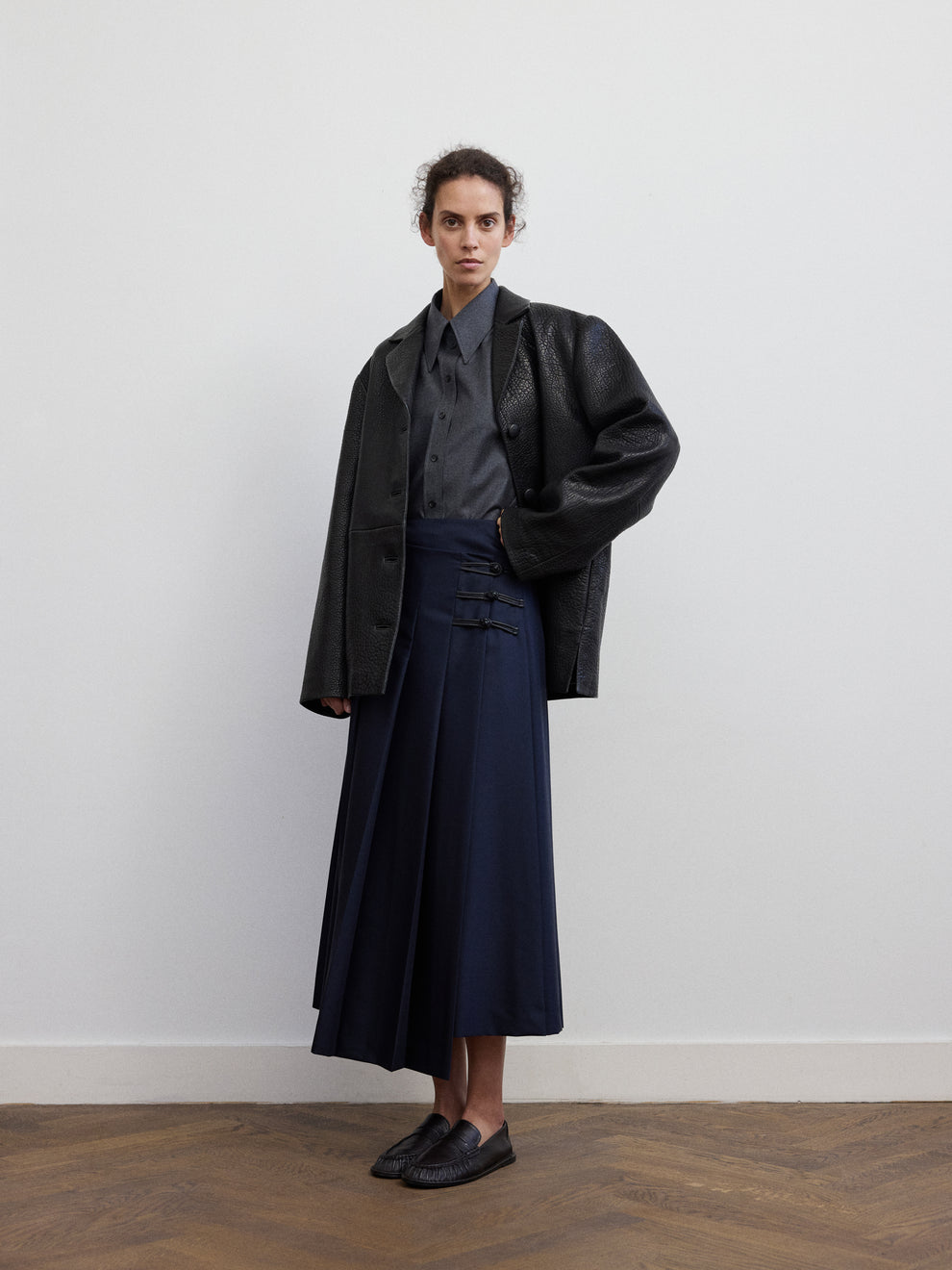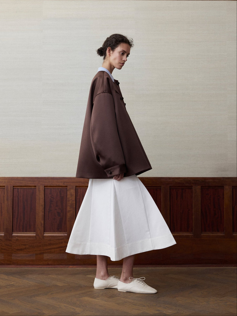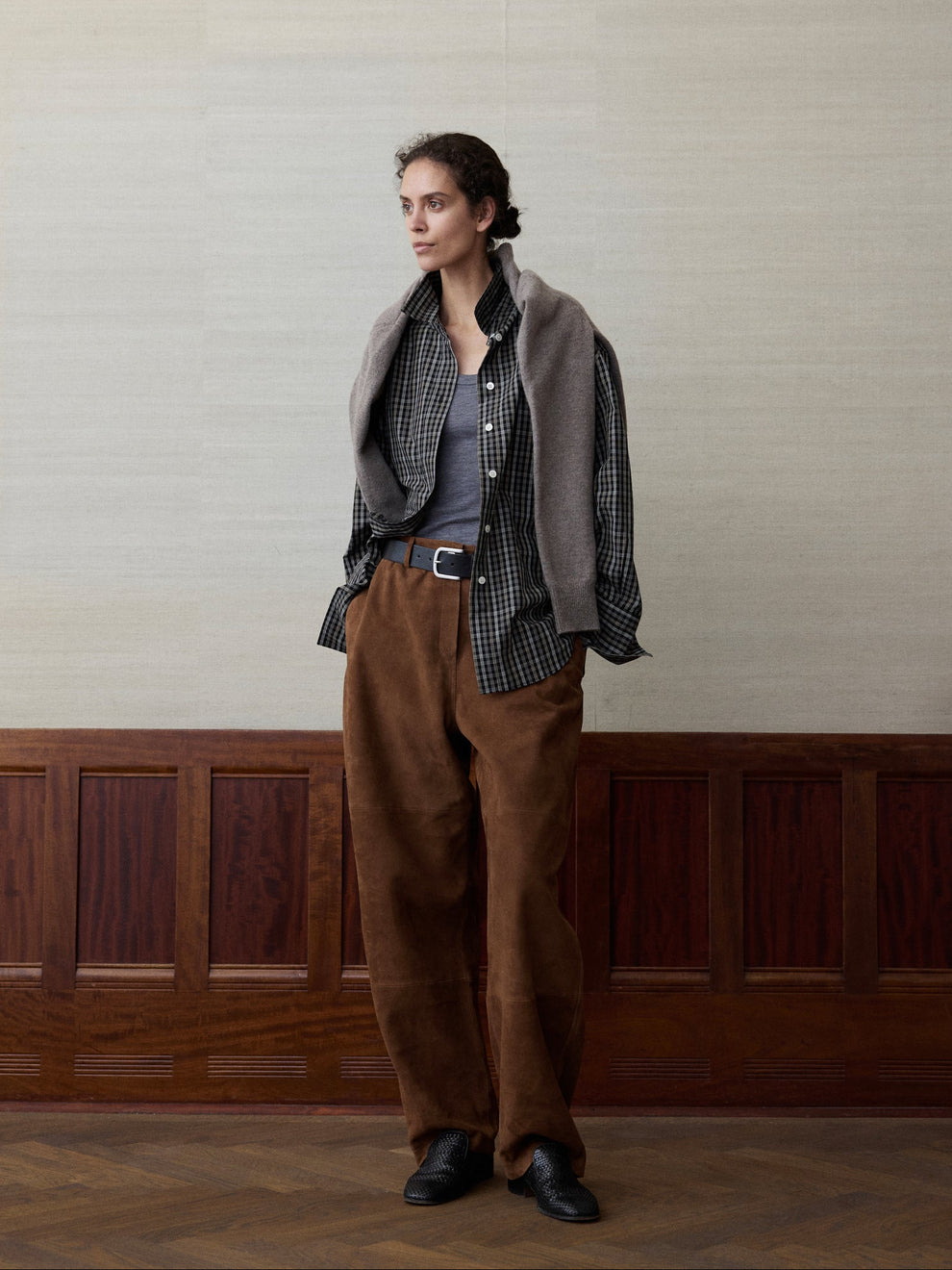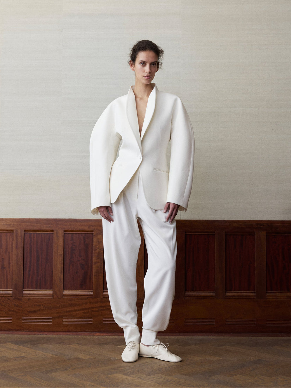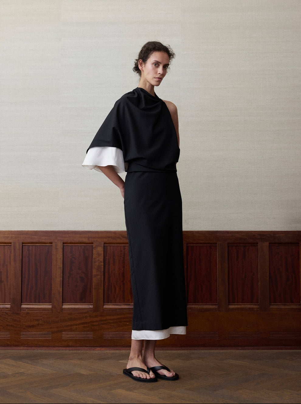 The new collection is a dialogue between past and present. Its inspiration began with an archival photograph of our home and muse, House de Vicq, in Amsterdam. A photograph taken in 1952 of the room where, decades later, we would create our collections. This space, with its traditional office atmosphere, ordinary wooden desks, and old telephones, captures a working life in a subtle mid-century stillness, set against the extraordinary backdrop of the house.