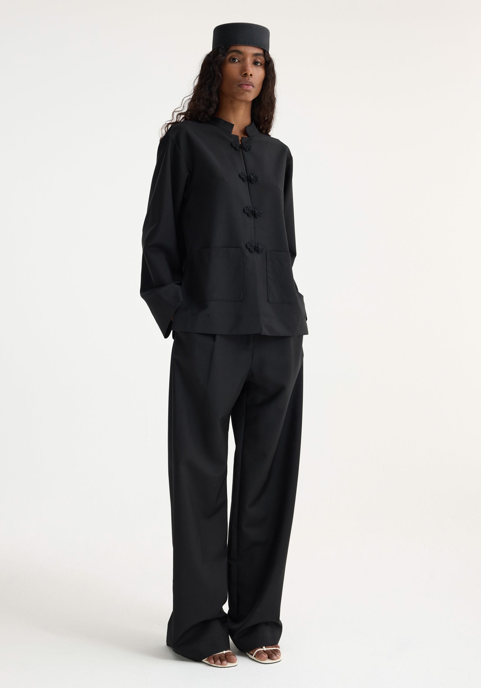 - A virgin wool and mohair blend quality, patched pockets, pankou closure