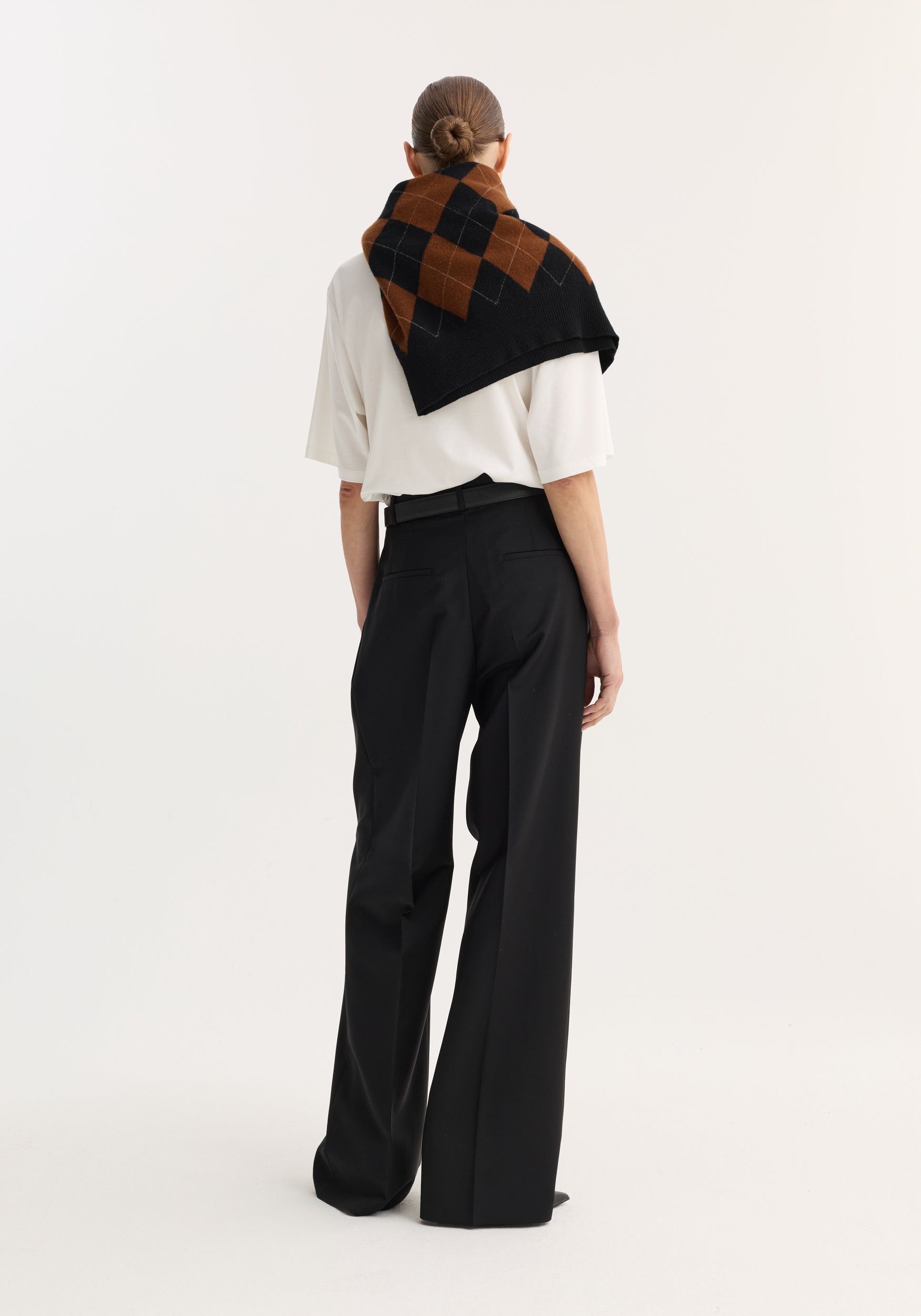 - Mid-waisted, tailored waistband, double pleated