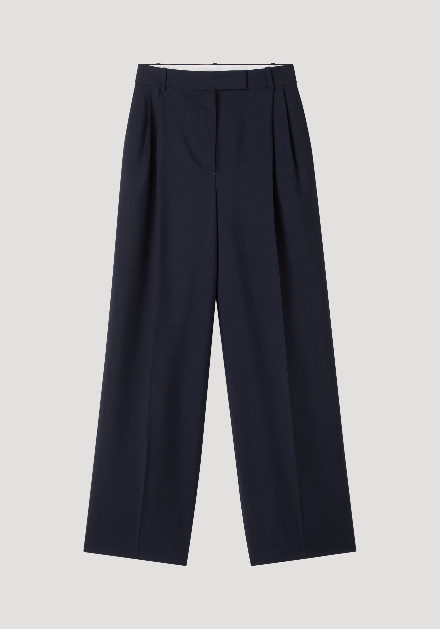 - Mid-waisted, tailored waistband, double pleated
