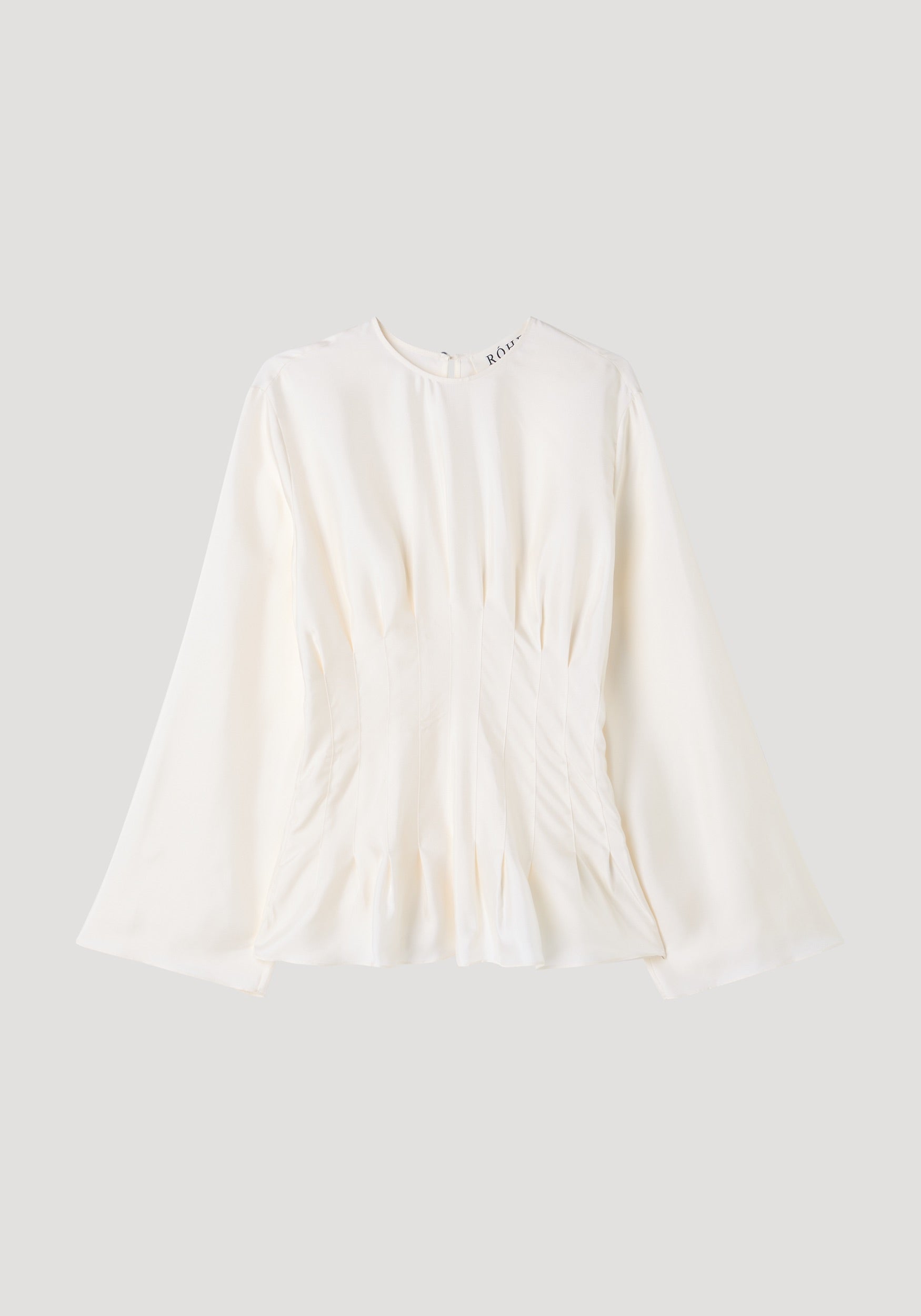 A flowing silk top defined by elegant pleats that shape a softly structured waist. Finished with a back keyhole closure, it offers a refined, effortless silhouette.