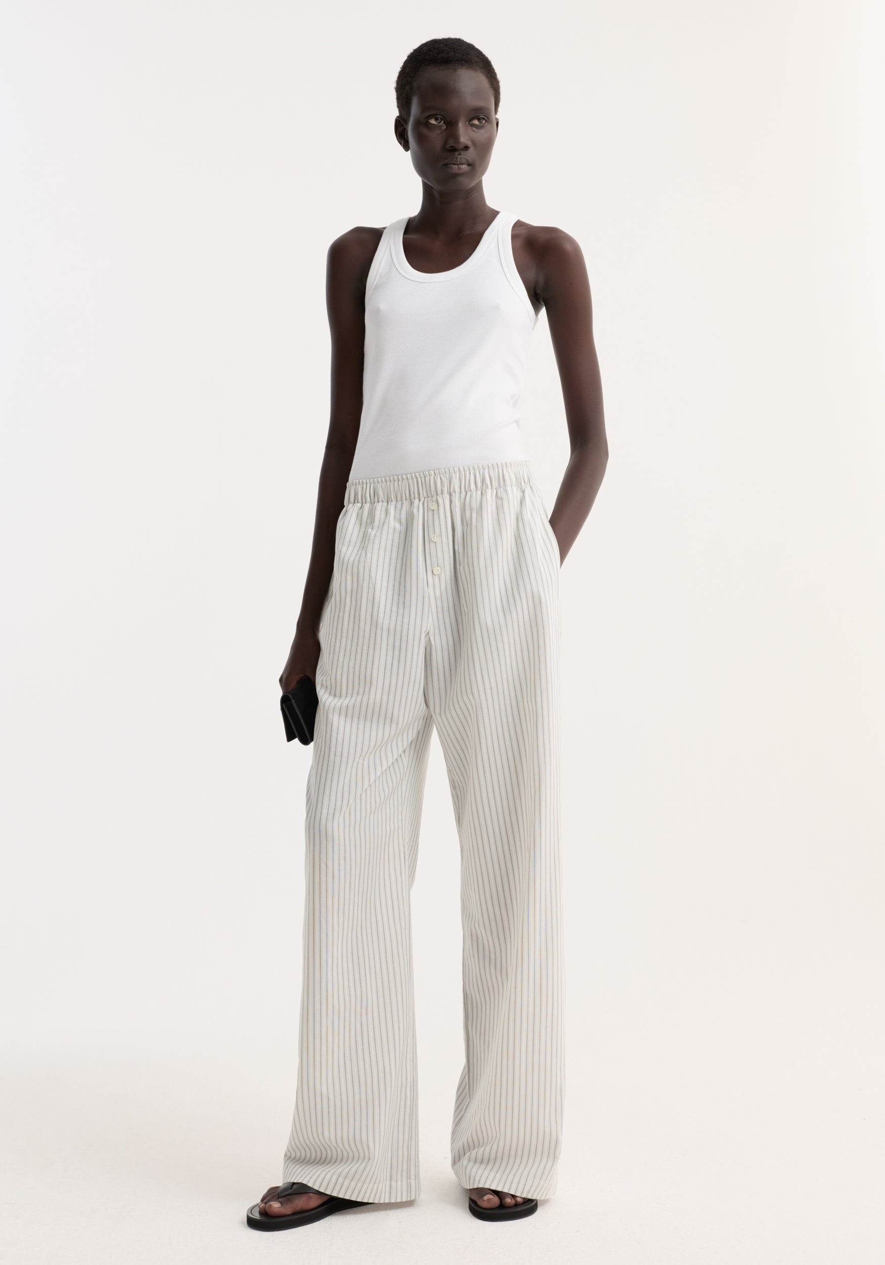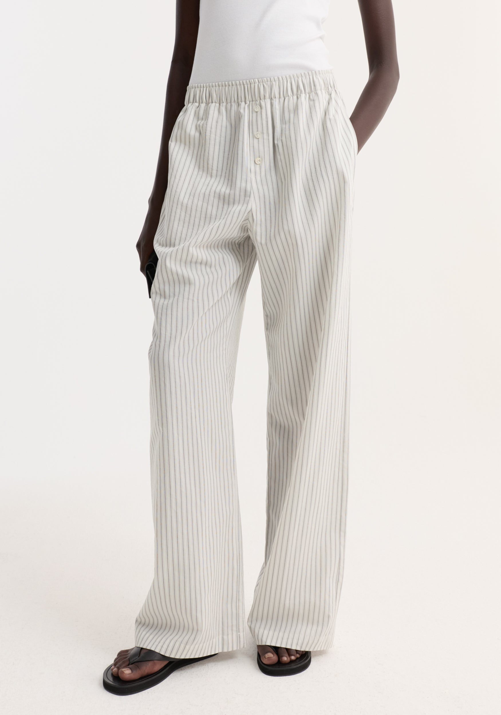 - Elasticated waistband, wide leg